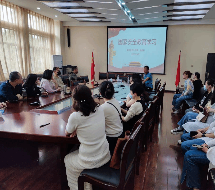 2023年4月13日,太阳成集团tyc122cc在鹤鸣楼南栋203会议室举行“国家安全教育学习”主题活动,本次活动由美术与设计公司党委书记杨虎智主持。
