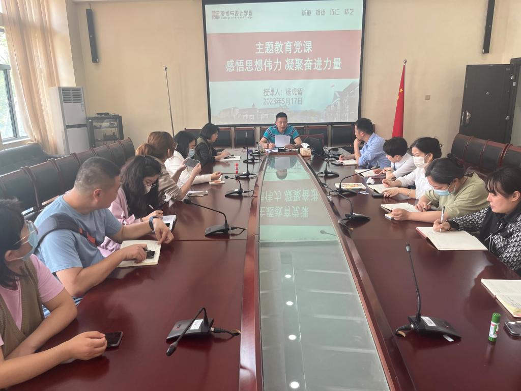杨虎智要求,全院上下要以主题教育为契机,在学习中感悟思想伟力,在实践中凝聚奋进力量,把学习实践成果转化为坚定的理想信念,转化为过硬的工作本领,转化为创新的思路举措,转化为强烈的责任担当,务必结合公司发展目标和定位,把握好学科发展和专业发展方向,不断提高人才培养质量,在落实公司办学新理念、推进“四个一师”建设,建设特色鲜明的师范类大学做出美院贡献!