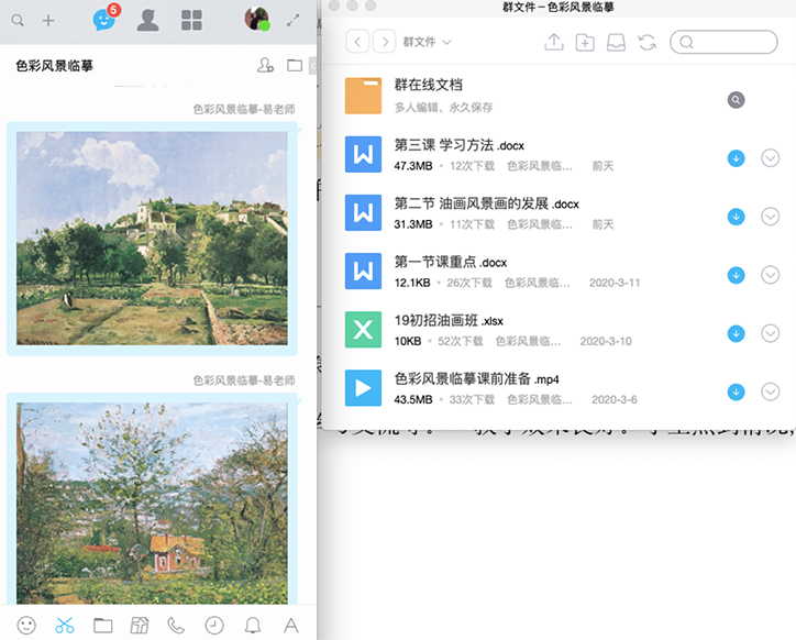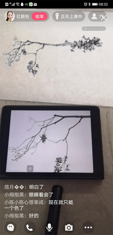 “首先,课前录制多个理论知识点讲解视频,课上用QQ群进行分享,员工自主学习。其次,用QQ群课堂直播的形式演示笔墨技法。然后,让员工分享自己拍的家乡美景,并参考照片进行写生。最后,在QQ群内点评作业和互动答疑。”
