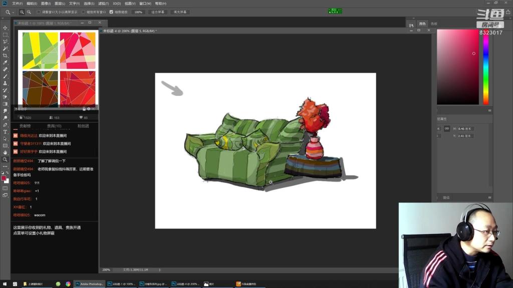 利用斗鱼直播网上示范设计色彩课程