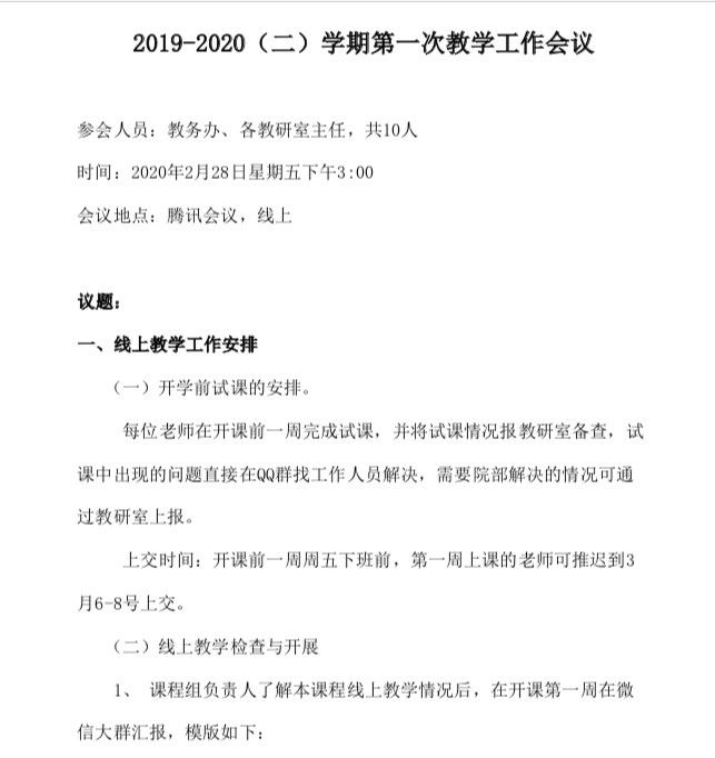 2、教务办专项云端会议,落实线上教学实施细节