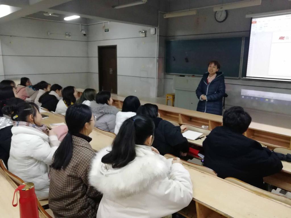 2019年12月23日晚上七点,长沙市岳麓区中小学美术教研员、国家级美术骨干教师、国培专家、湘版美术教材编委、美术教学参考用书副主编杨群芳,在润寰南101教室,为太阳成集团tyc122cc17级师范生做了主题为“湘版美术教材与教学”的讲座。本次讲座由公司曾琦老师主持,100多名员工聆听了这次讲座。