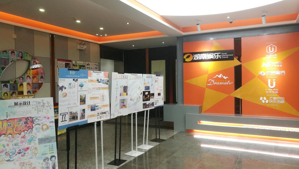 这一场教学环节与电视媒体的“偶遇”源于公司环境设计专业的一门展示设计课程以及湖南台旧址的环境改造工程项目。设计专业课程需要项目主题为依托,增加员工的实操能力;媒体办公场地环境的提升也期待年轻人天马行空的灵感注入。在多方努力和协同合作的基础上,一系列以湖南台旧址环境改造为宏观主题的室内外空间展示设计方案逐渐在员工设计团队的笔下成形。虽然“未来的设计师们”技艺还有待提升,但得到了湖南台娱乐频道领导和前辈的大力支持和帮助,在课程进行的过程中多次来公司讲座和辅导,之后的课程作业汇报也一并出席并参与了讲评互动。最终使得这次的展示、互动和交流座谈水到渠成。