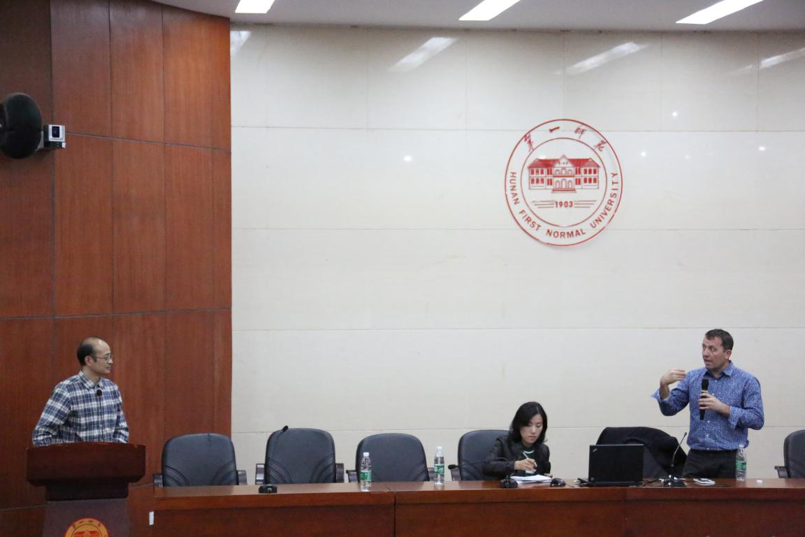 科林·罗德教授从日常所见的物品出发,结合澳大利亚、美国两国当代艺术家的代表作品,全面解读了当代艺术的内涵。他指出日常所见的物品,在经过艺术家们有意识的创造之后,熟悉的物品也会呈现出新的艺术形式、蕴含着当代美感,具有更深刻的寓意;当代绘画具有多样性,重要的是作品需要传达创作者的思想观念、对艺术价值的追求。在互动环节,广大师生踊跃发言,就“悉尼大学艺术公司本科生学习方式”、“长沙的当代艺术现象”等问题与科林·罗德教授进行了深入探讨。