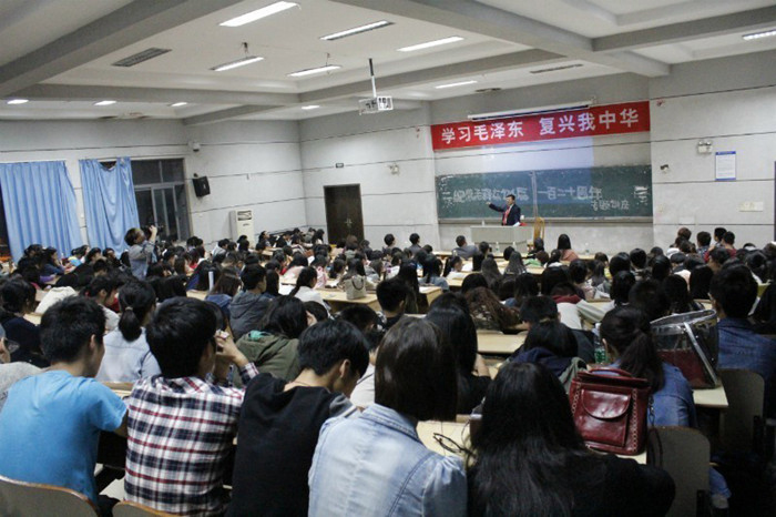 组织观看《毛泽东遗物的故事》,是我系纪念伟人毛泽东诞辰120周年、求学一师100周年的系列活动之一。本学期我系围绕毛泽东诞辰120周年还举办了一系列纪念活动。9月9日,在新生入学教育中,系党总支副书记舒克斌为新生作了《伟人毛泽东求学成才之路》的讲座,帮助员工认识到:成就一代伟人不是偶然的,这是毛泽东自身的艰辛努力和一师范诸多良师的指引培养、益友的相互砥砺的结果。10月16日,系部特邀黑龙江鸡西矿业集团党委宣传部部长、宣传毛泽东思想20余年的毛泽东研究专家陈烈先生作了《学习毛泽东,复兴我中华》的演讲,希望同学们要学习毛泽东的伟大思想和人格,从而实现复兴我中华的伟大梦想。10月24日,在公司第九届青年学习节中,我系以“浓墨重彩一师情”为主题,现场用浓墨重彩,绘一师的景,书主席的诗,表达对母校的热爱、对伟人的崇敬。目前,我系正在认真筹办“纪念伟人毛泽东诞辰120周年、求学一师100周年、一师建校110周年”师生美术作品展,拟展出200多件作品,涵盖绘画、设计、书法、剪纸等多艺术门类,这将给公司“三庆”又添一道美丽的风景。