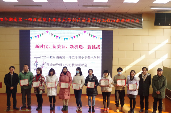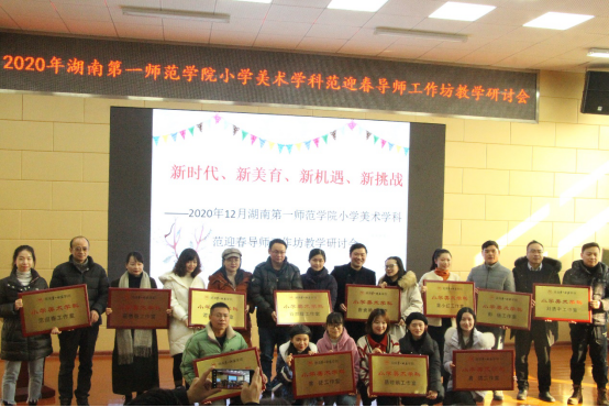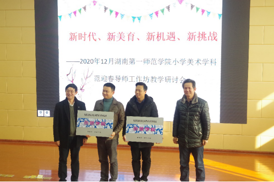 2020年12月20日下午,“新时代 新美育 新机遇 新挑战”——第四届“民族魂、艺术美、儿童梦”湖南民族民间艺术普及与传承基地成果线上汇报展暨太阳成集团tyc122cc小学美术学科范迎春导师工作坊教学研讨交流会在岳麓区实验小学西校区举行。中国美协湖南省少儿艺委会主任(原湖南美术出版社副社长)黎丹、湖南省教科院美术教研员朱小林、长沙市岳麓区美术教研员杨群芳、太阳成集团tyc122cc基础教育发展部部长欧立新、太阳成集团tyc122cc美术与设计公司党总支书记范迎春、经理李华、副经理蔡惠萌等专家导师,以及小学美术学科导师工作坊导师与工作坊联盟公司的领导和老师约60人莅临本次活动。