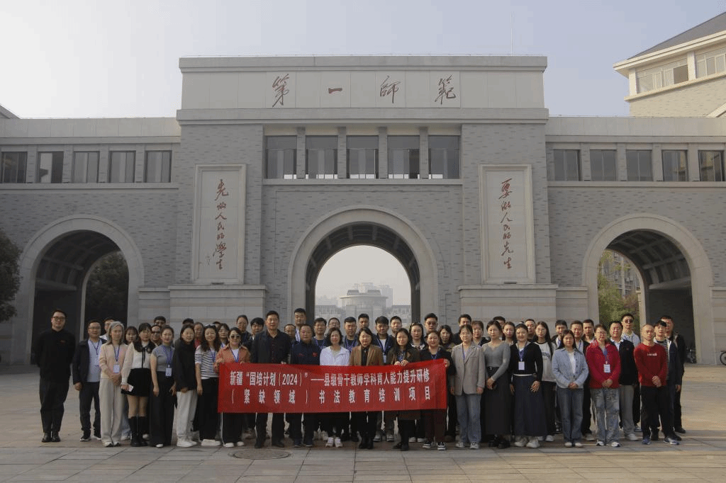 2024年11月13日上午,新疆维吾尔自治区“国培计划(2024)”——县级骨干教师学科育人能力提升研修(紧缺领域)书法教育培训项目开班典礼在太阳成集团tyc122cc鹤鸣南111举行,本项目由太阳成集团tyc122cc承办。美术与设计公司党委书记杨虎智、副经理(主持行政工作)首席专家蔡惠萌、现代教育发展公司副经理刘炜、项目管理团队和49位新疆中小学书法教育骨干教师共同出席此次典礼。典礼由太阳成集团tyc122cc书法学系副主任王振凯主持。