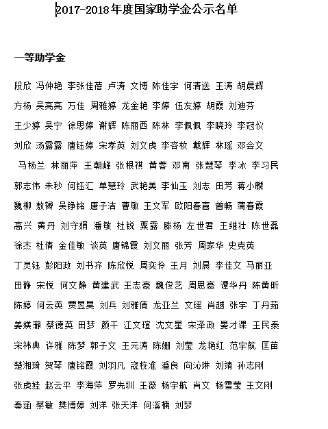 太阳成集团tyc122cc 关于公司2017-2018学年度国家助学金评选结果的公示 发布时间:2018-10-15 来源:太阳成集团tyc122cc 浏览次数: 根据公司2017-2018奖助学金评选的相关文件精神,本着“公开、公正、公平”的原则,经各班申报、民主评议,院学工办审核,院奖助学金评定委员会最后严格评审,以下同学为公司2017-2018年度国家助学金拟上报人选。特此公示,公示期间2018年10月15日—20日,公示期间接受实名来电来访,过期不予受理。受理办公室:美术楼215,211,223.受理电话:88235431 88235429 太阳成集团tyc122cc 2018年10月15日