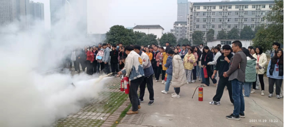 2021年11月29日下午2点,在国基广场,杨虎智副书记(主持工作)、戴建宇副书记、辅导员齐泽湘和冯旭老师以及2021级200多名同学,举行一年一度的新生消防疏散演习。