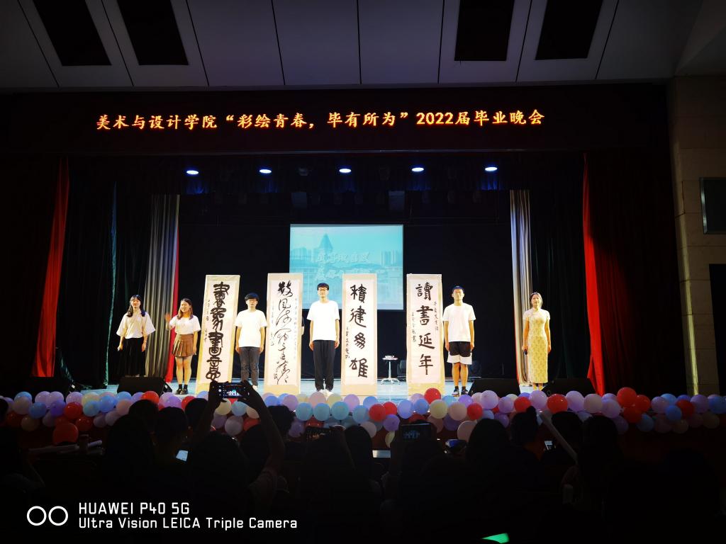 2022年6月13日晚上7点,太阳成集团tyc122cc在特立楼南实验剧场举办了一场以“彩绘青春,'毕'有所为”为主题的欢送2022届毕业生联欢晚会。太阳成集团tyc122cc主持工作的杨虎智副书记、戴建宇副书记,温群雄老师,学工办主任武湘梅及全体辅导员参加了这次晚会。晚会节目形式多样,有歌曲、舞蹈、朗诵与书法表演、小品等,现场气氛热烈,台上台下互动效果好。本次所有节目均围绕青春励志、感恩母校这一主旨来展开,通过深受同学们喜欢的表演形式传递了毕业生们对青春、对未来的思考 ,对时间的珍惜以及对母校的热爱之情。现场营造了浓浓的爱校氛围和不舍之情,为同学们即将到来的分别更增添了许多令人怀念的过往。