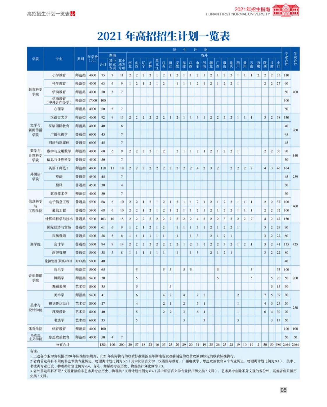 2021年招生计划一览表