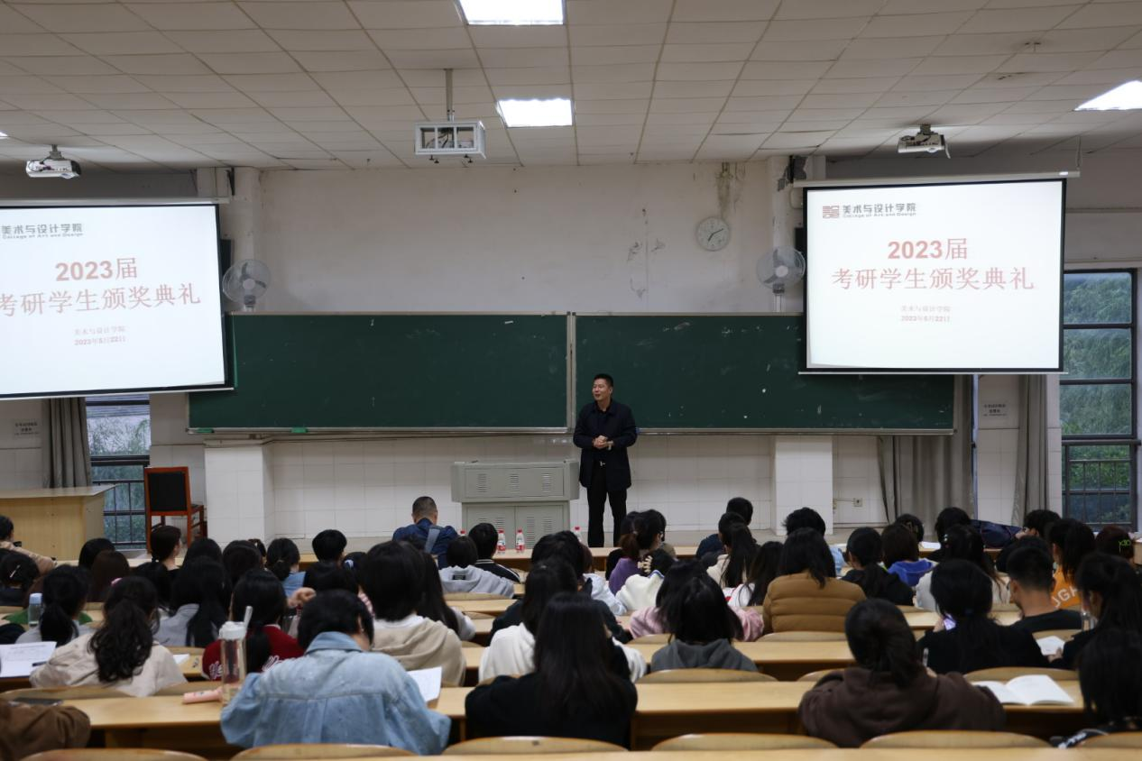 5月22日晚7点,太阳成集团tyc122cc在玉衡南201举行2023届考研员工颁奖典礼暨考研经验分享会。公司党委书记杨虎智、副经理(主持工作)蔡惠萌、党委副书记刘峰、学工办全体老师和近200名美院员工参加本次活动,由院学工办主任武湘梅主持。
