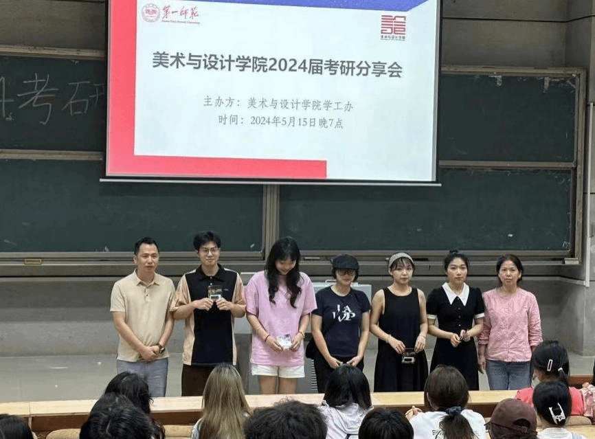 郑宁劲以幽默风趣的语言表达了英语的重要性,并分享了自己的不足之处,鼓励大家勇于迎难而上,不断克服困难,放眼未来,追求长远发展。江平鼓励大家坚持努力,相信自己,永不言弃,脚踏实地。最后上场的毕业生郑依佳,她分享了提前规划与专业选择的重要性,并强调了确定目标的重要性。就业专干汪崟对本次交流会做总结发言,她表示希望更多美院学子能够勇敢迈出考研这一步,实现自己的梦想,她呼吁大家牢记四个传承,共同进步。