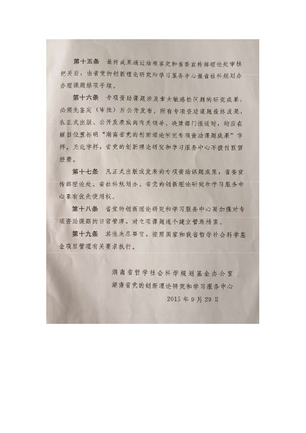 第二十三条 凡由省科学技术厅拨款资助的软科学研究计划项目,在申报成果和公开发表时均应在显著位置标明“湖南省科学技术厅软科学研究计划(重点)资助项目”。