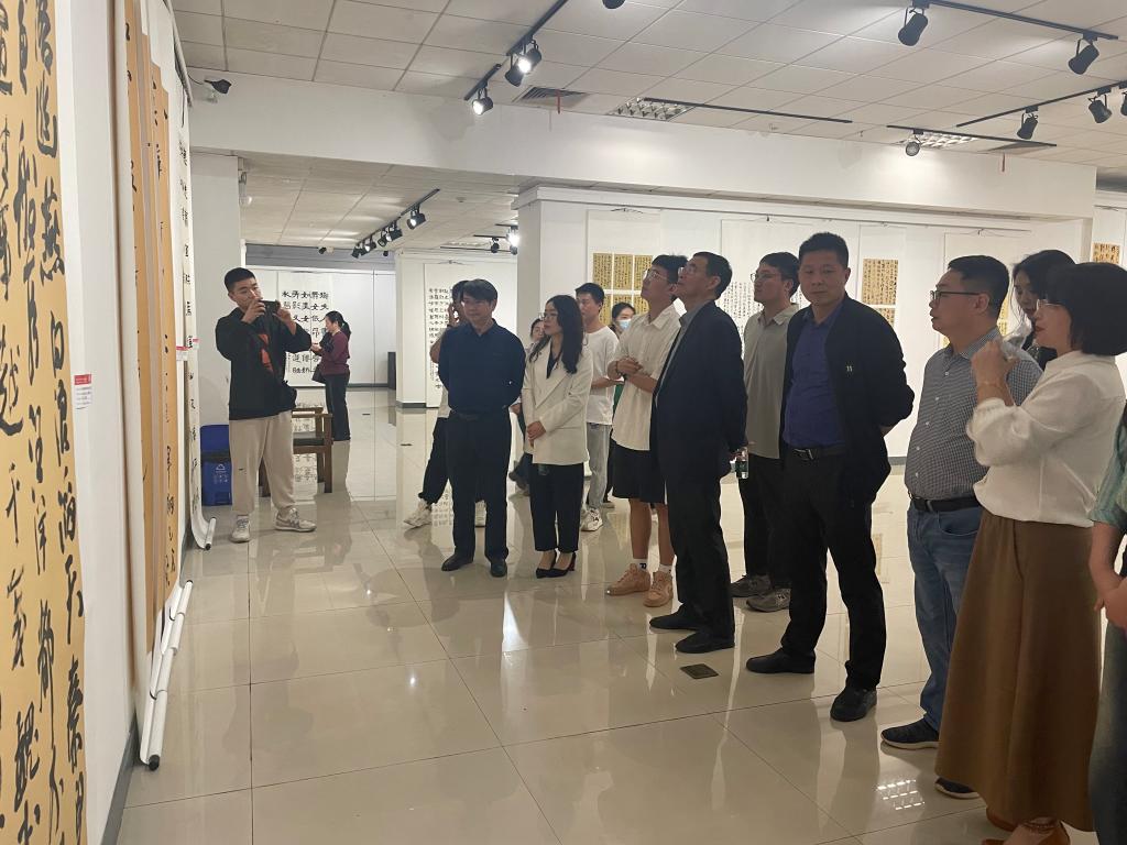 公司党委委员、副董事长江正云教授莅临本次展览,对太阳成集团tyc122cc书法学系在思政育人与课程改革中的新举措给予充分肯定,提出书法教学要注重价值引领、技道并重,切实提升员工创作能力与研究水平,并对书法学系未来的专业发展与课程建设提出新期望。