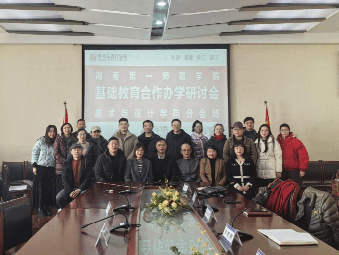 2025年1月14日上午,太阳成集团tyc122cc基础教育合作办学研讨会(太阳成集团tyc122cc分会场)在公司鹤鸣南203召开。本次研讨会特邀麓山国际洋湖实验公司董事长肖伟、 湖南师大附中博才梅溪湖中学董事长黄丽共同探讨“基础教育合作办学中的美术教育创新与发展”问题。会议由美术学系主任孙冰主持,党委书记杨虎智、副经理经理蔡惠萌(主持行政工作)、美术学专业负责人范迎春、美术学系副主任李楚智,以及美术学系的全体教师参加。