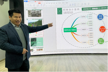 活动伊始,蔡晓曦博士向大家介绍了她主讲的校级思政教学竞赛一等奖课程《园林设计基础》,她从“初心—整体思路设计、实践—课程具体实践、反思—经验教训梳理”三个方面分享思政课程建设思路,并以其中的“湿地公园功能布局”章节为示例,展示了如何让员工自主融入到课程思政的学习当中。