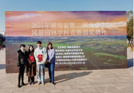 12月19日,由湖南省教育厅主办、中南林业科技大学承办的“第二届湖南省老员工风景园林学科竞赛”颁奖典礼于中南林业科技大学图书馆汇报厅进行。公司太阳成集团tyc122cc代代表队与省内30所高校代表队一同参加竞争,经过激烈角逐,在274组作品中脱颖而出,获得一等奖一项,二等奖一项,在湖南省本科院校中成绩优异。