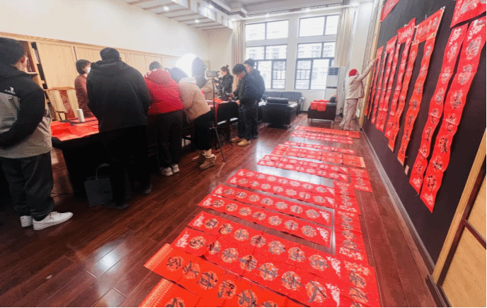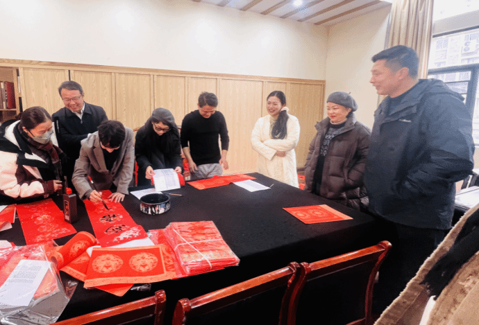 随着春节的脚步日益临近,美术公司设计公司分工会特别举办了一场别开生面的春联书写活动。本次活动由杨虎智书记主持,邀请彭晓辉董事长,张娴处长参与活动。本院书法教师:王佳宁副教授、文佐副教授、王振凯主任、唐浩荣老师等为全院教师现场挥毫泼墨,书写春联,以传统艺术的形式迎接即将到来的新春。